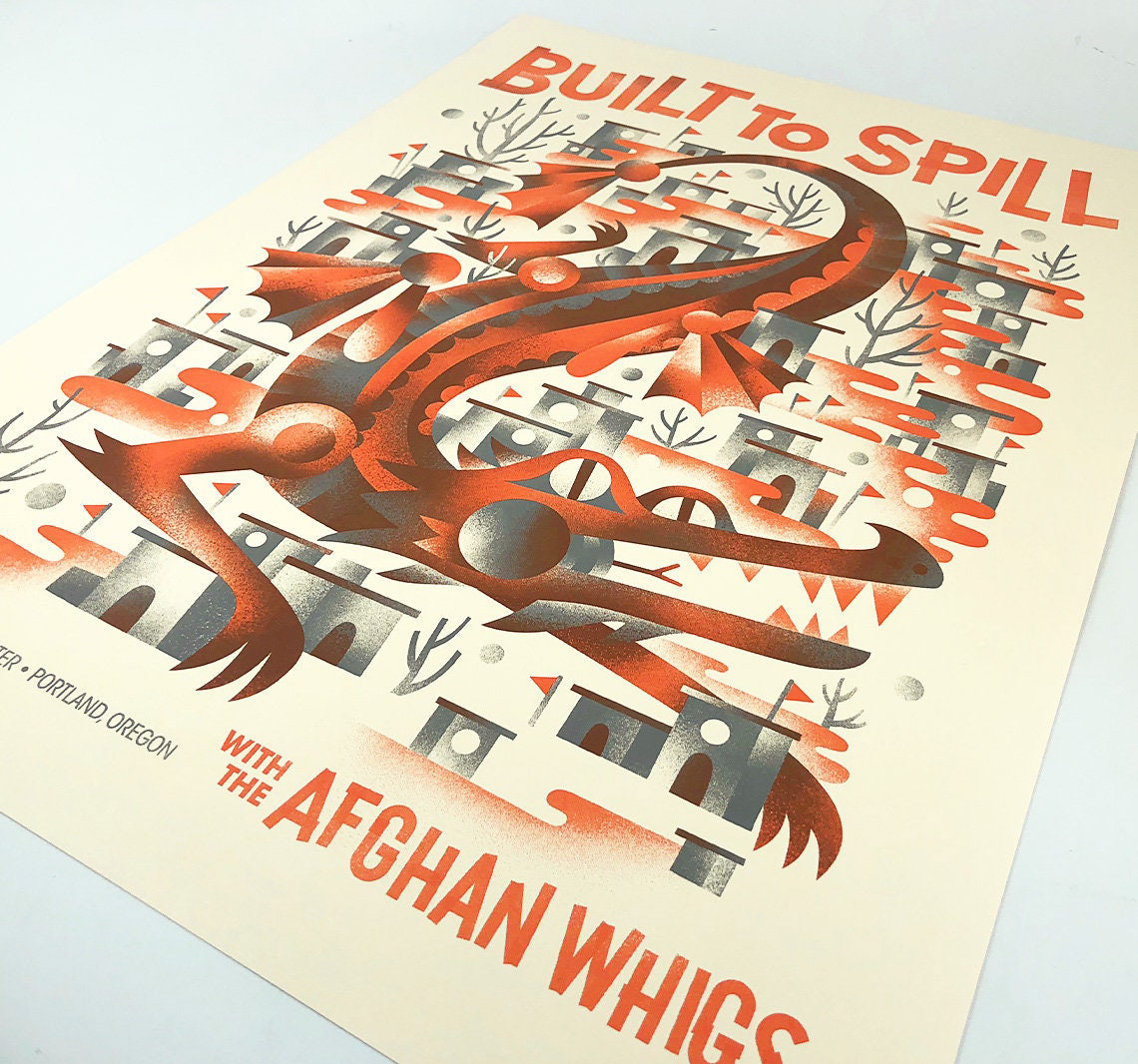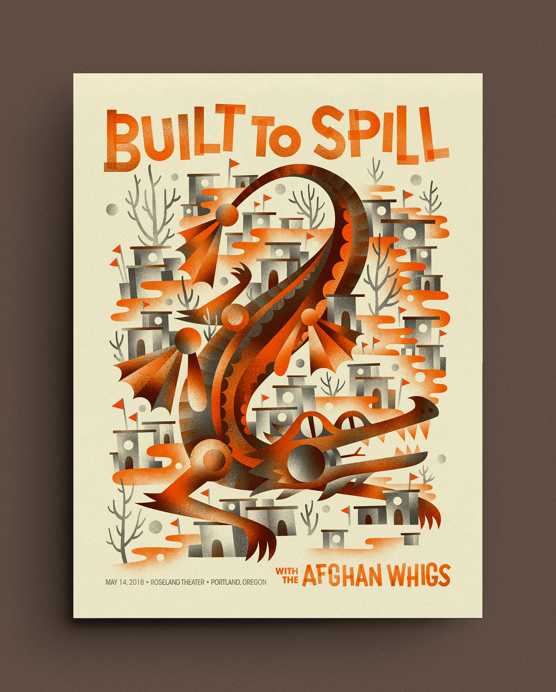 The official poster for Built To Spill's May 14, 2018 show at the Roseland Theater in Portland, Oregon with the Afghan Whigs.