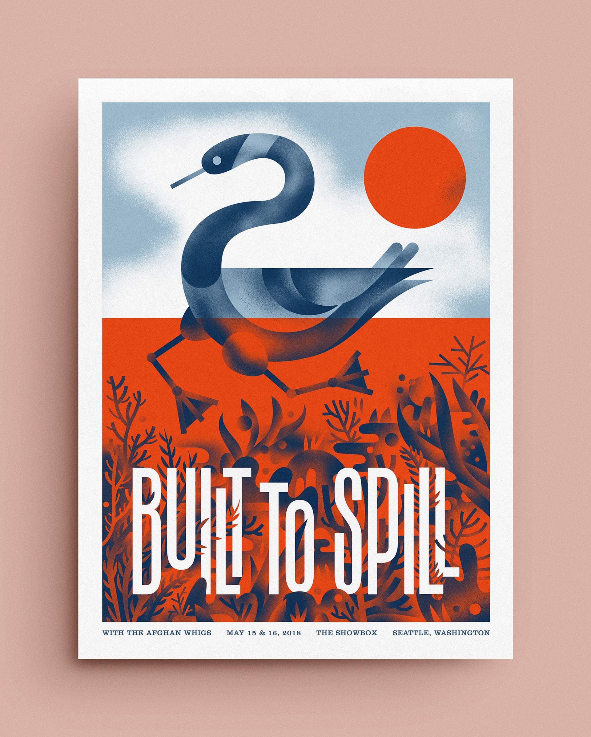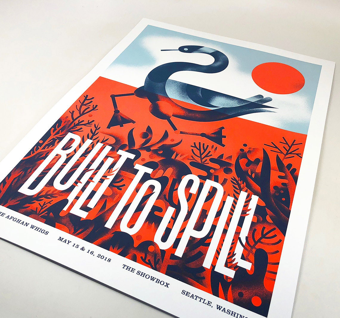 The official poster for Built To Spill's 2-night run at the Showbox in Seattle, Washington with the Afghan Whigs.