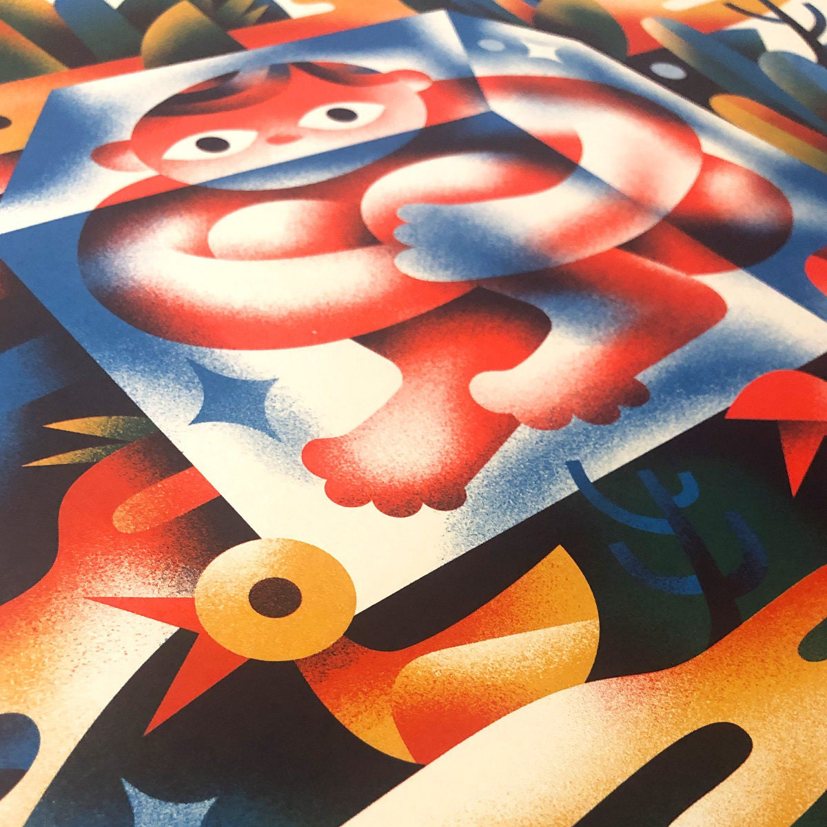 Limited edition 18x24 inch, 4-color screen print on off-white card stock and rainbow foil.