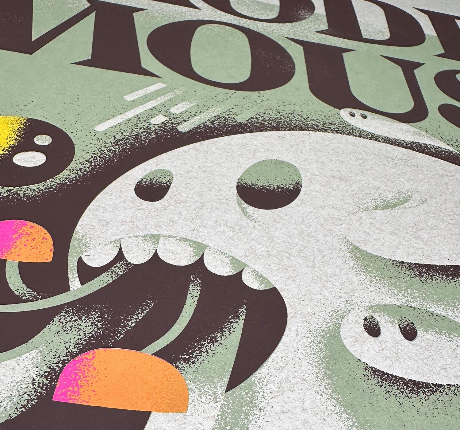 Limited edition 18x24 inch, 4-color screen print on greenish-yellow card stock.