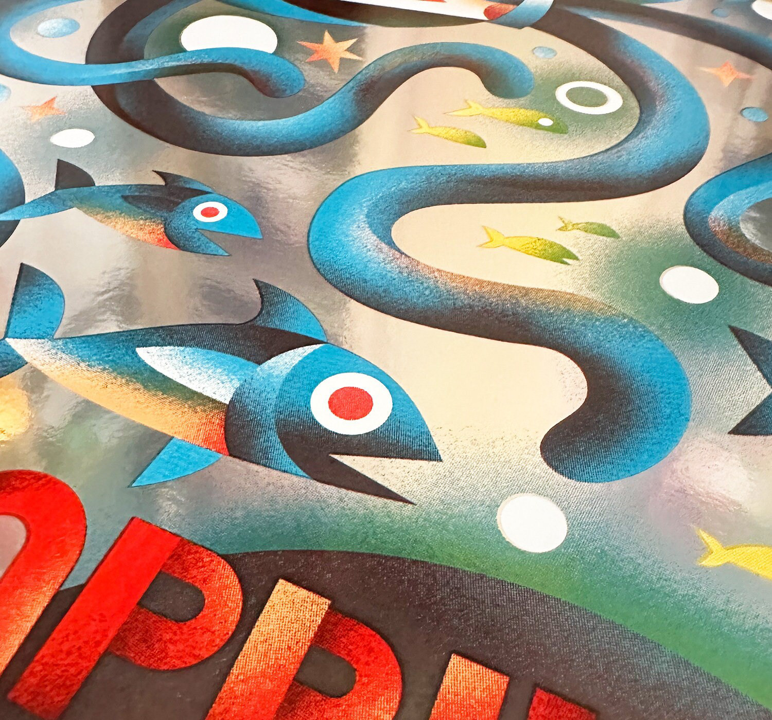 Limited edition 18x24 inch, 4-color screen print on sturdy off-white card stock and rainbow foil.